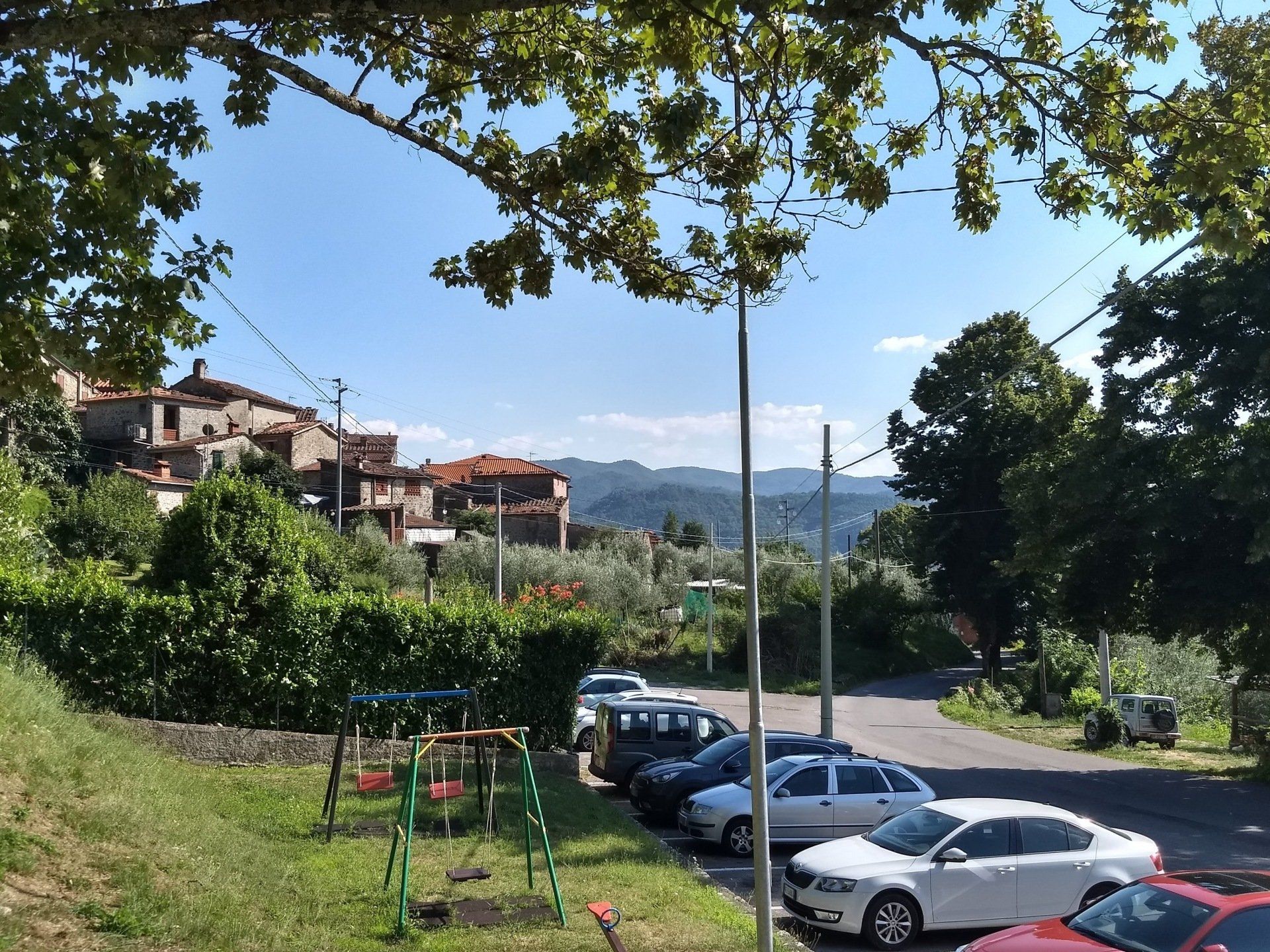 Ons zonnige vakantiehuis is gelegen aan het mooie en rustieke dorpspleintje. Via een doorgang in de vorm van een boog (un arco) wandel je onder het huis door naar het kerkje en de uitgestrekte kastanjebossen rond de Monte Prato Fiorito. Langs een bospad (800 m.) bereik je het hoger gelegen San Gemignano, waar je o.a. een kruidenierswinkeltje (alimentari) vindt.